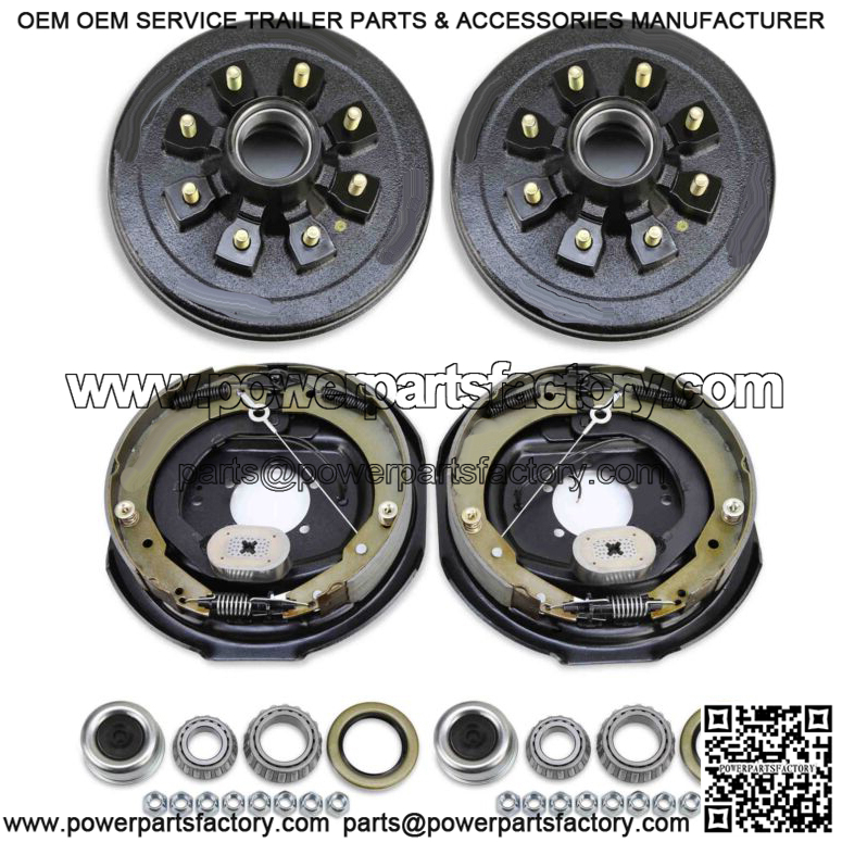 2x HDTrailer 8 on 6.5″ B.C hub drum kits w/ 9/16″ studs + 2x self adjusted 12″x2″ electric brakes for HD7k-8k Lbs Axle;