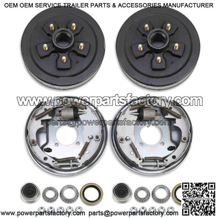 2 x trailer 5 on 4.5″ hub drum kits + 2 x 10″x2-1/4″ Hydraulic free backing marine brakes for Dexter and other brands 3,500 lbs trailer axle;