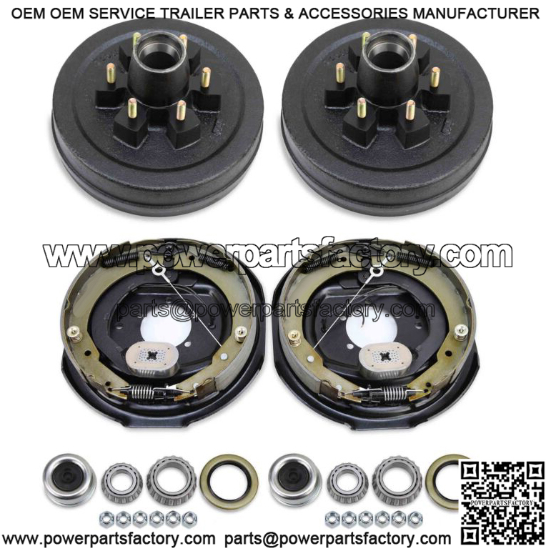 2x Trailer 6 on 5.5″ B.C hub drum kits + 2x 12″x2″ self adjusted electric brakes for 6-7000 Lbs Axle, Bolt pattern: 6 on 5.5″;