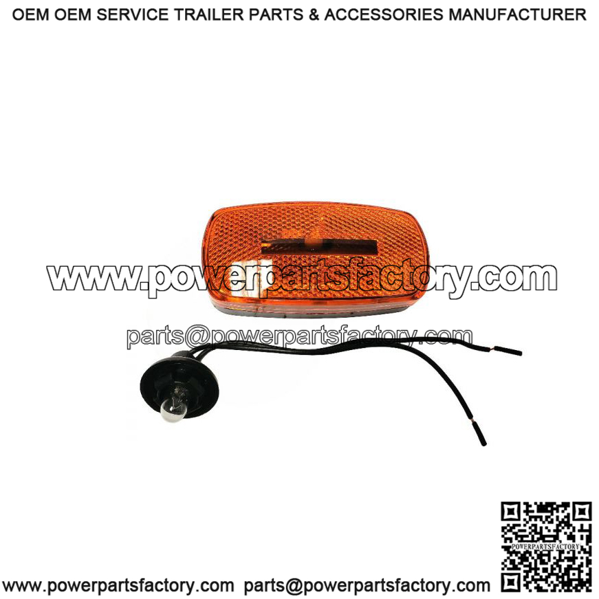 Oval amber surface mount marker light with black base and reflex lens mounts on 3″ centers. 5 inch long 2-wire pigtail and bulb are included.