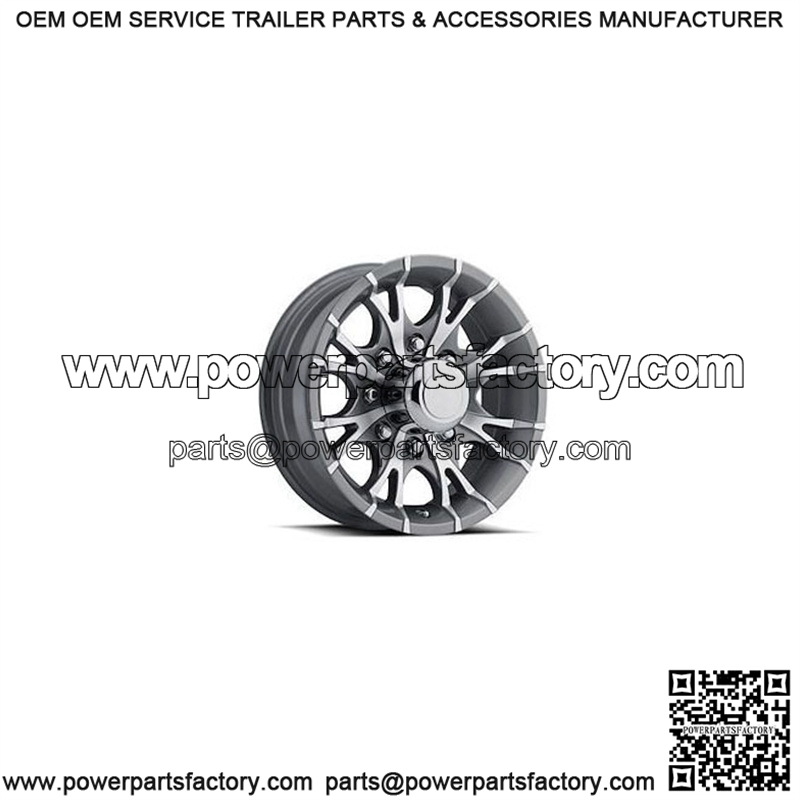 16″ Aluminum Gray Machined Spoke 6-Lug Trailer Wheel (6″ Width)
