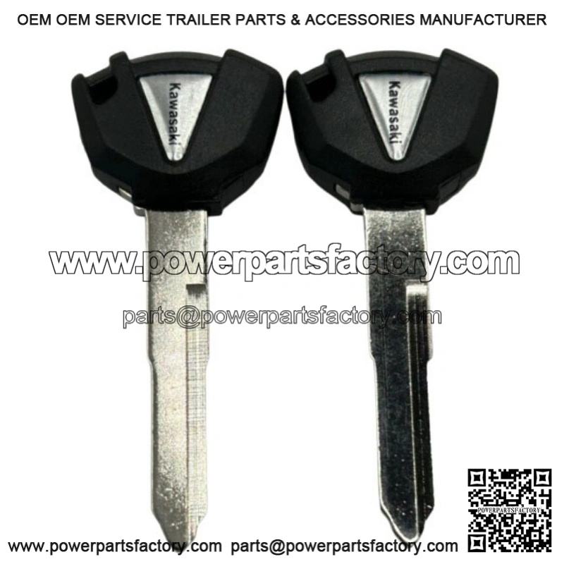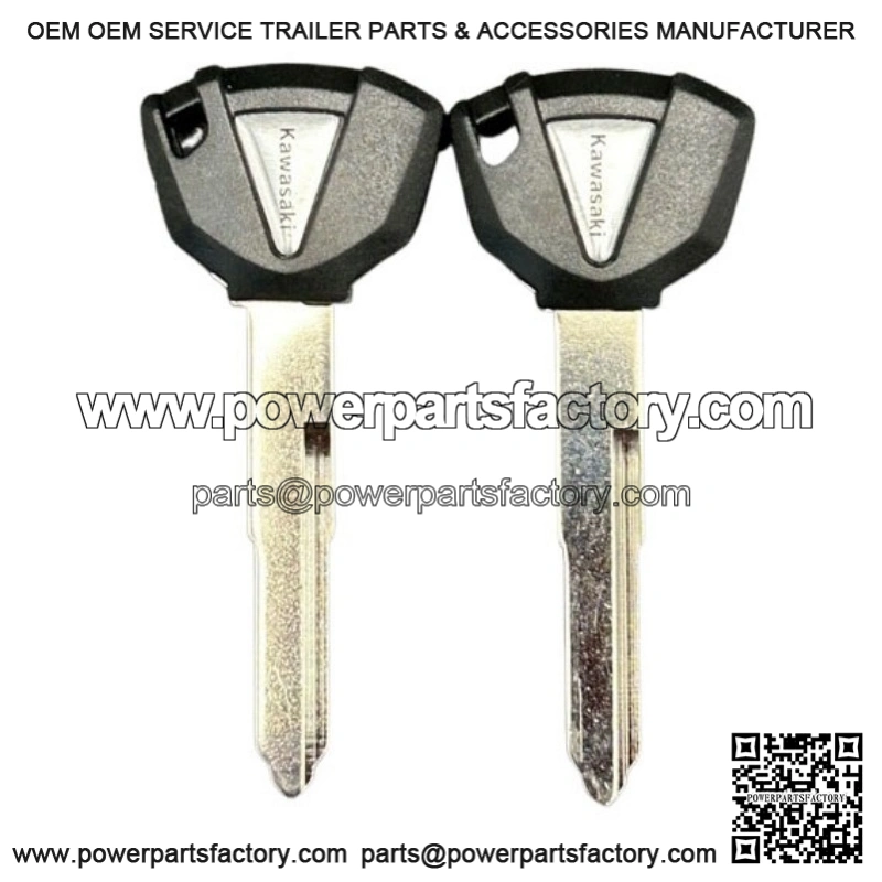 This set of two key blanks is compatible with a range of Kawasaki models including street motorcycles, ATVs, dirt bikes, and scooters. They feature a sleek silver and black color. These key blanks are suitable for various Kawasaki models. They are an essential item for any Kawasaki owner who needs a spare key or replacement.